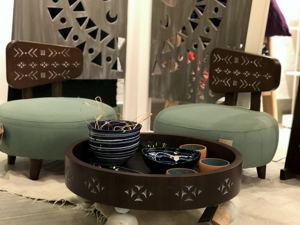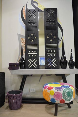 Sheleves unit modern twisted with vintage effects and engravings drawn previously on Nubian houses to thank God for all his blessings.